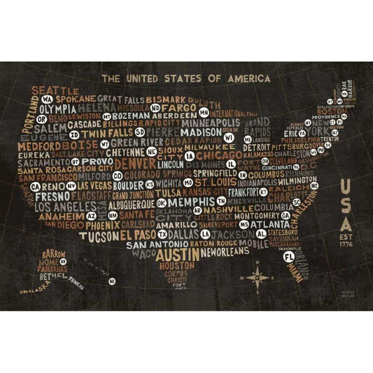 US City Map Black Gold Ornate Wood Framed Art Print with Double Matting by Mullan, Michael