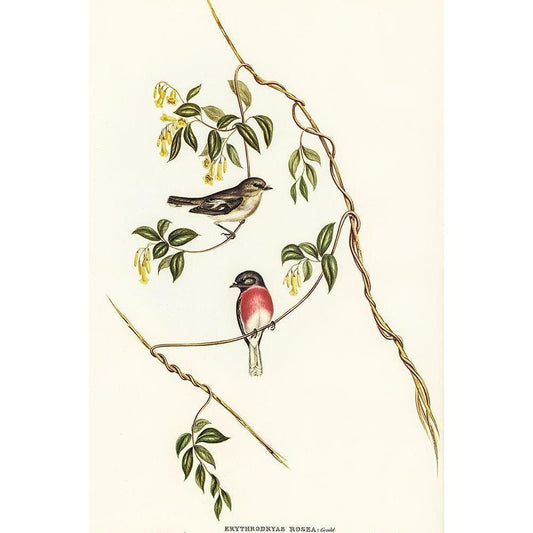Rose-breasted Wood-robin-Erythrodryas rosea Gold Ornate Wood Framed Art Print with Double Matting by Gould, John
