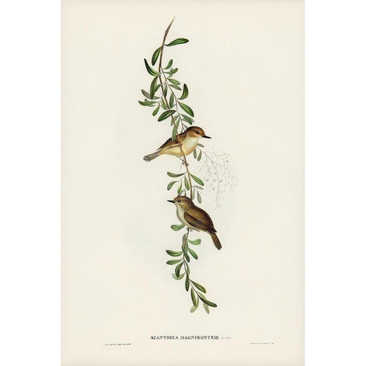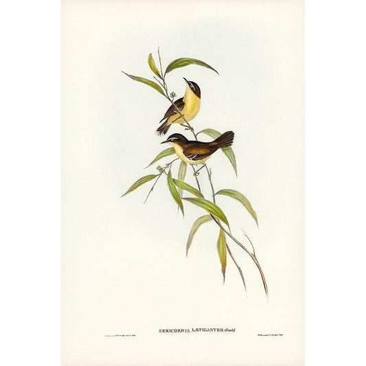 Large-billed Sericornis-Sericornis magnirostris Gold Ornate Wood Framed Art Print with Double Matting by Gould, John