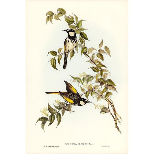 Yellow-tinted Honey-eater-Ptilotis flavescens Gold Ornate Wood Framed Art Print with Double Matting by Gould, John