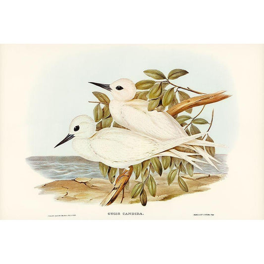 White Tern-Gygis candida Gold Ornate Wood Framed Art Print with Double Matting by Gould, John