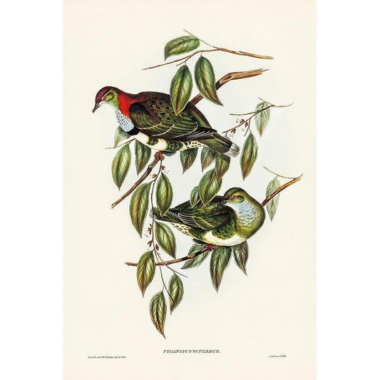 Superb Fruit Pigeon-Ptilinopus superbus Gold Ornate Wood Framed Art Print with Double Matting by Gould, John