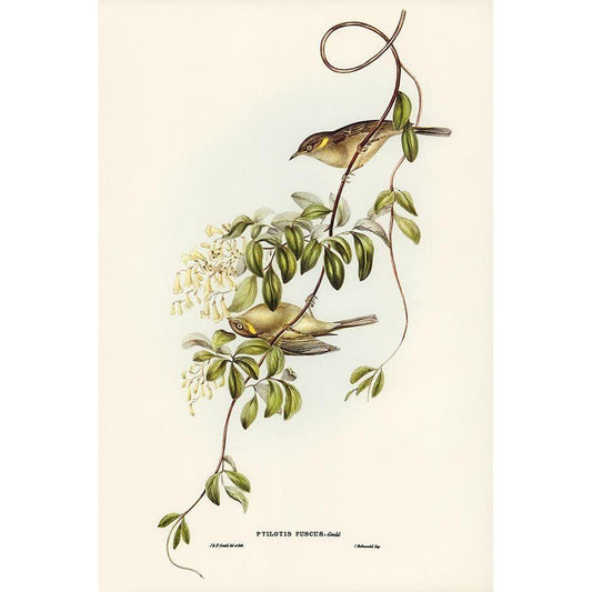 Fuscous Honey-eater-Ptilotis fusca Gold Ornate Wood Framed Art Print with Double Matting by Gould, John