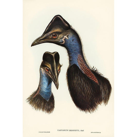 Bennetts Cassowary-Casuarius Bennetti Gold Ornate Wood Framed Art Print with Double Matting by Gould, John