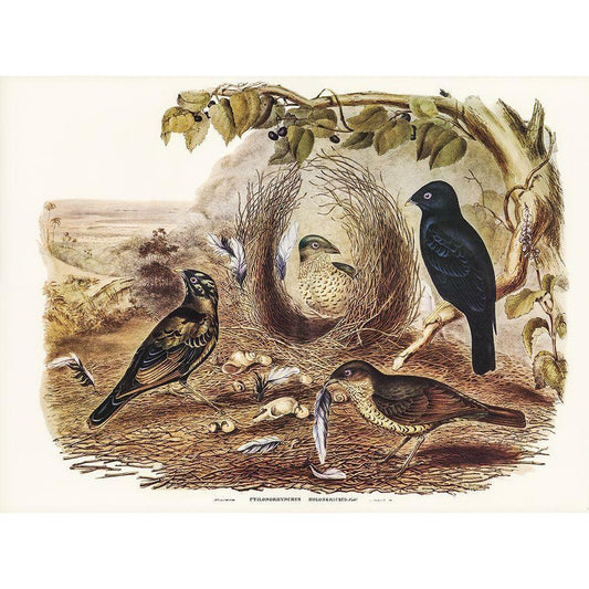 Satin Bower Bird-Ptilonorhynchus holossericeus Gold Ornate Wood Framed Art Print with Double Matting by Gould, John