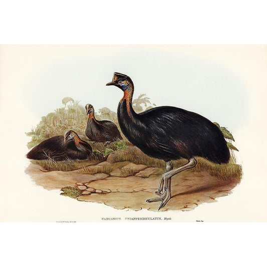 One-carunculated Cassowary-Casuarius uniappendiculatus Gold Ornate Wood Framed Art Print with Double Matting by Gould, John