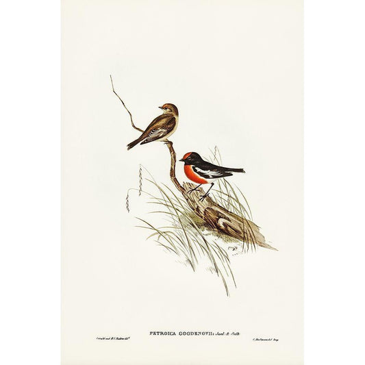 Red-capped Robin-Petroica Goodenovii Gold Ornate Wood Framed Art Print with Double Matting by Gould, John