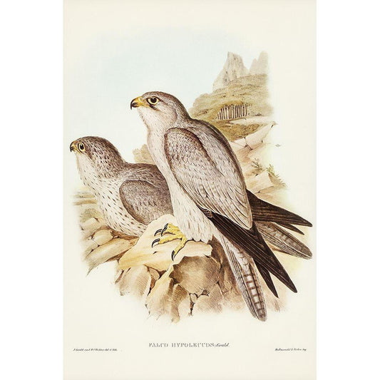Gray falcon-Falco Hypoleucus Gold Ornate Wood Framed Art Print with Double Matting by Gould, John