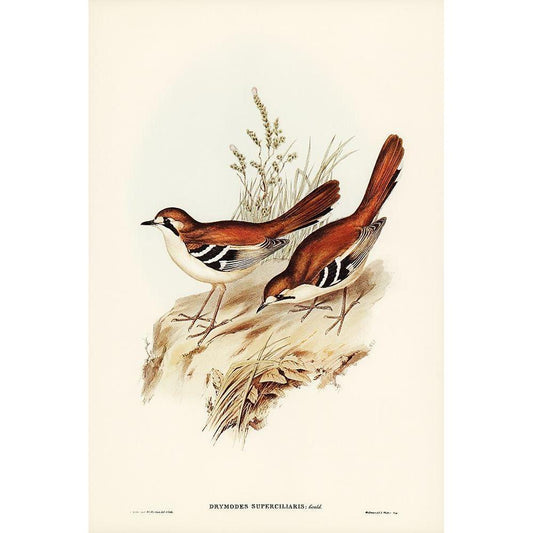 Eastern Scrub-Robin-Drymodes superciliaris Gold Ornate Wood Framed Art Print with Double Matting by Gould, John