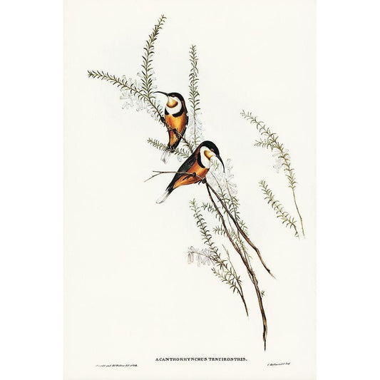 Slender-billed Spine-bill-Acanthorhynchus tenuirostris Gold Ornate Wood Framed Art Print with Double Matting by Gould, John