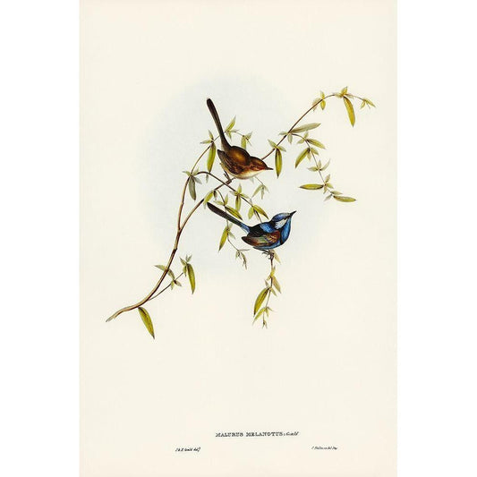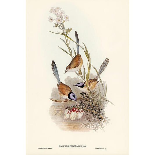 Crowned Wren-Malurus coronatus Gold Ornate Wood Framed Art Print with Double Matting by Gould, John