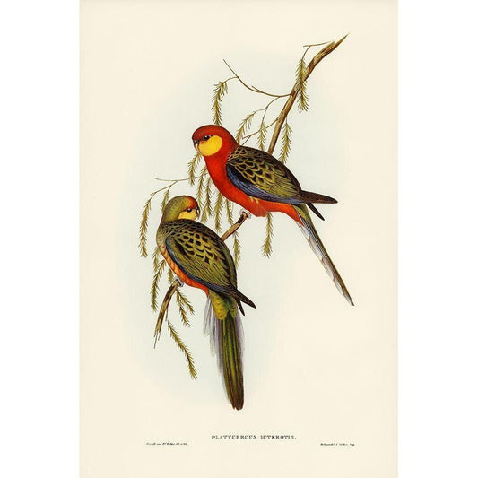 The Earl of Derbys Parrakeet-Platycercus icterotis Gold Ornate Wood Framed Art Print with Double Matting by Gould, John
