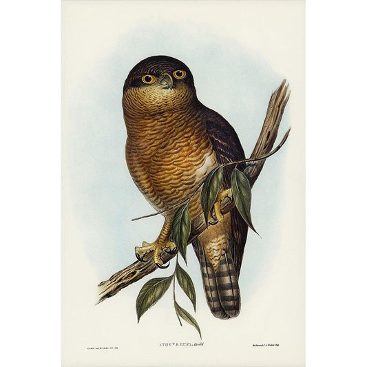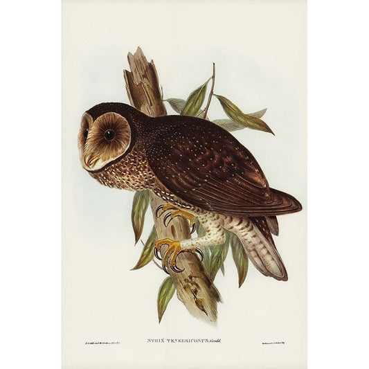 Rufous Owl-Athene rufa Gold Ornate Wood Framed Art Print with Double Matting by Gould, John