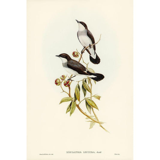 White-tailed Robin-Eopsaltria leucura Gold Ornate Wood Framed Art Print with Double Matting by Gould, John