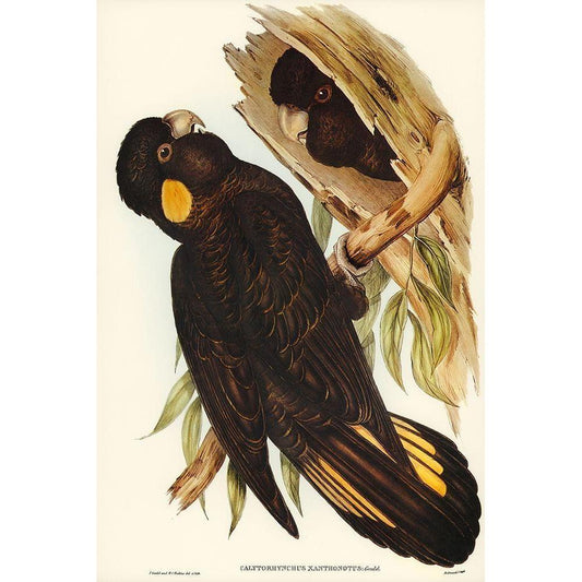 Yellow-eared Black Cockatoo-Calyptorhynchus xanthonotus Gold Ornate Wood Framed Art Print with Double Matting by Gould, John