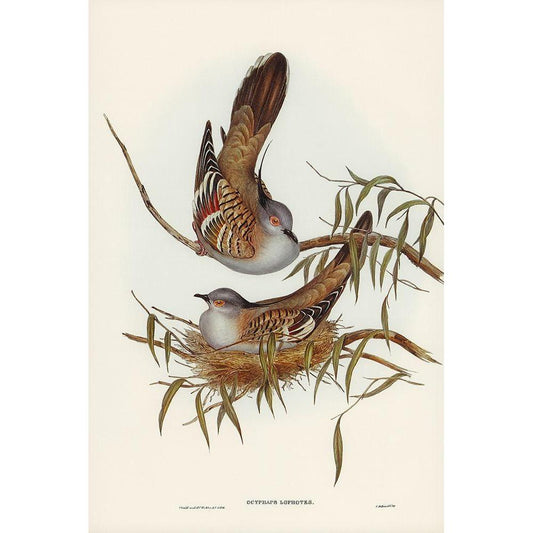 Crested Pigeon-Ocyphaps Lophotes Gold Ornate Wood Framed Art Print with Double Matting by Gould, John