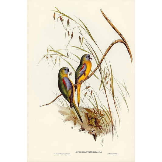 Chestnut-shouldered Grass-Parakeet-Euphema pulchella Gold Ornate Wood Framed Art Print with Double Matting by Gould, John