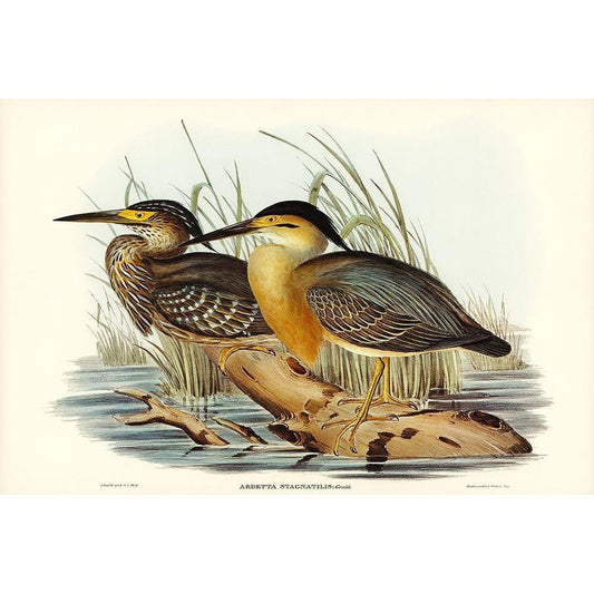 Little Grey Bittern-Ardetta stagnatilis Gold Ornate Wood Framed Art Print with Double Matting by Gould, John