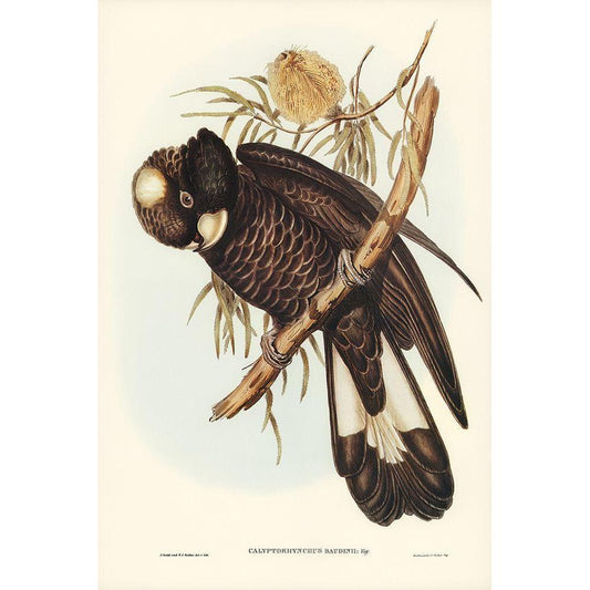 Baudins Cockatoo-Calyptorhynchus Baudinii Gold Ornate Wood Framed Art Print with Double Matting by Gould, John
