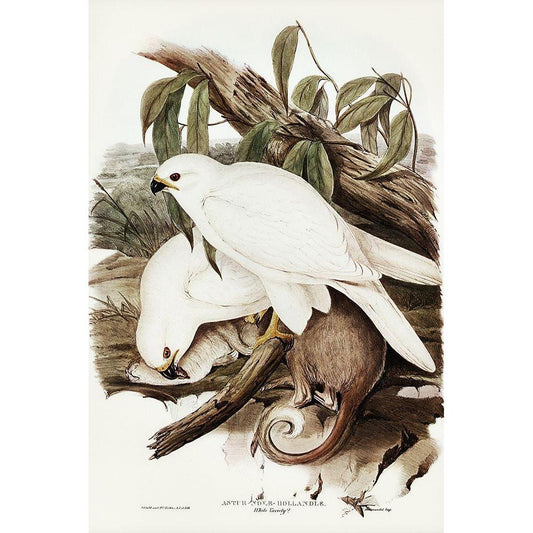 White Goshawk-Astur Nova-Hollandix-albino Gold Ornate Wood Framed Art Print with Double Matting by Gould, John