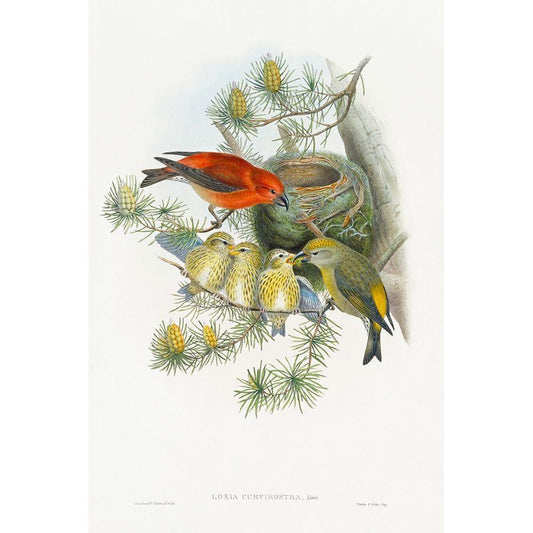 Loxia Curvirostra-Linn Gold Ornate Wood Framed Art Print with Double Matting by Gould, John