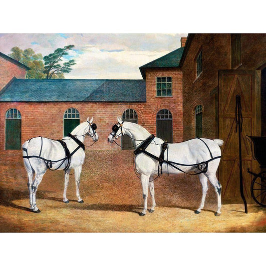 Grey carriage horses in the coachyard at Putteridge Bury-Hertfordshire Gold Ornate Wood Framed Art Print with Double Matting by Herring, John Frederick