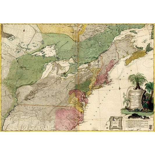 Theatre of War in North America 1755 Gold Ornate Wood Framed Art Print with Double Matting by Vintage Maps