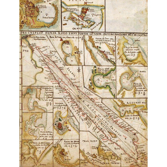 Portuguese Map of the Red Sea and The Middle east 1630 Gold Ornate Wood Framed Art Print with Double Matting by Vintage Maps