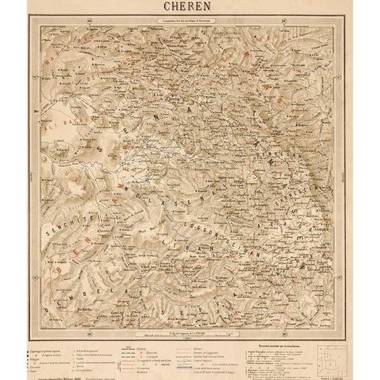 Cheren Eritrea Ethiopia Gold Ornate Wood Framed Art Print with Double Matting by Vintage Maps