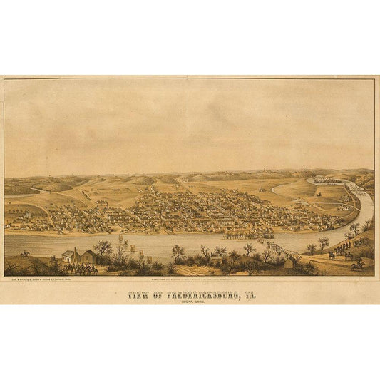 Fredericksburg aerial view 1863 Gold Ornate Wood Framed Art Print with Double Matting by Vintage Maps