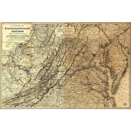 Fredericksburg and Gordonsville Rail Road 1869 Gold Ornate Wood Framed Art Print with Double Matting by Vintage Maps