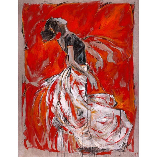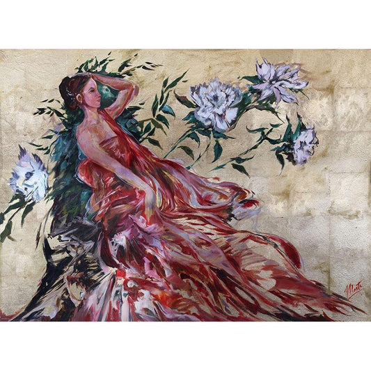 Red Dancer- Cadmium Gold Ornate Wood Framed Art Print with Double Matting by Wiley, Marta