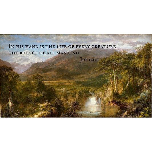 Bible Verse Quote Job 12:10, Frederic Edwin Church - Church Heart of the Andes Gold Ornate Wood Framed Art Print with Double Matting by ArtsyQuotes