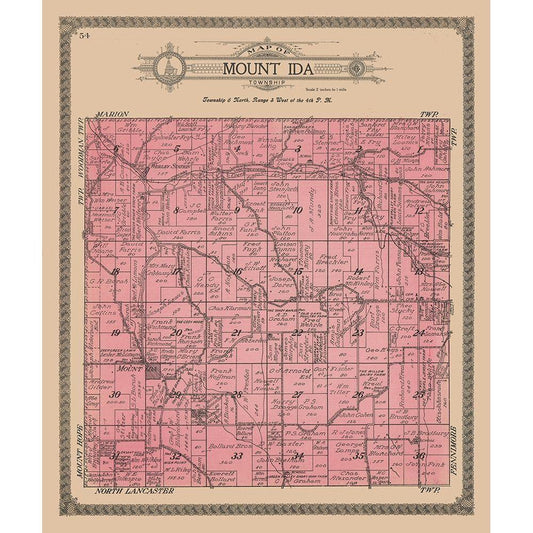 Mount Ida Township Wisconsin - Ogle 1918 Gold Ornate Wood Framed Art Print with Double Matting by Ogle