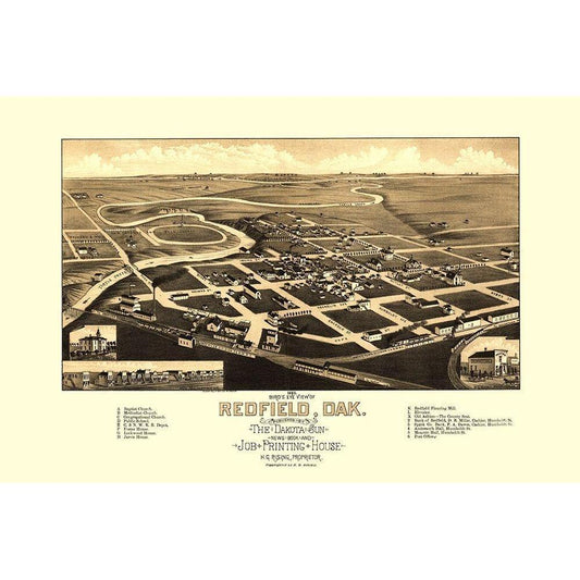Redfield South Dakota - Rising 1883 Gold Ornate Wood Framed Art Print with Double Matting by Rising