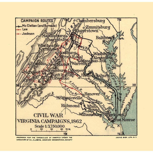 Civil War Campaign Virginia - Joerg 1862 Gold Ornate Wood Framed Art Print with Double Matting by Joerg
