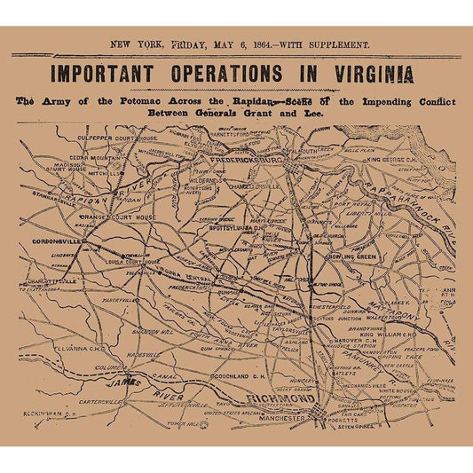 Important Operations Virginia - 1864 Gold Ornate Wood Framed Art Print with Double Matting by Unknown