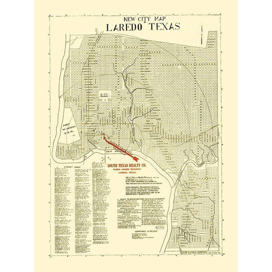 Laredo Texas - Alamo Blue Print 1930 Gold Ornate Wood Framed Art Print with Double Matting by Alamo Blue Print