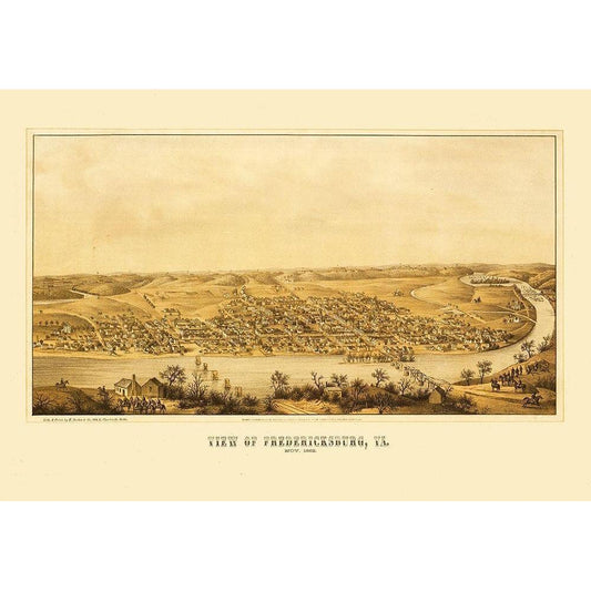 Fredericksburg Virginia - Sachse 1863 Gold Ornate Wood Framed Art Print with Double Matting by Sachse