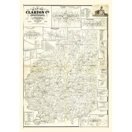 Clarion County Pennsylvania - Pomeroy 1865 Gold Ornate Wood Framed Art Print with Double Matting by Pomeroy