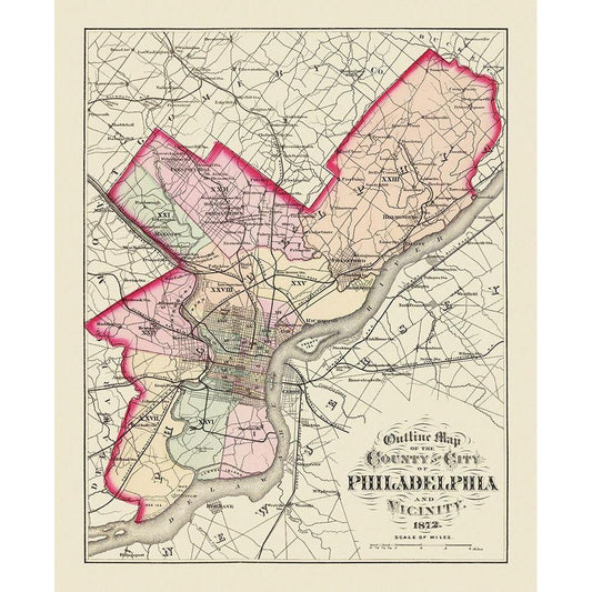 Philadelphia Pennsylvania - Walling 1872 Gold Ornate Wood Framed Art Print with Double Matting by Walling