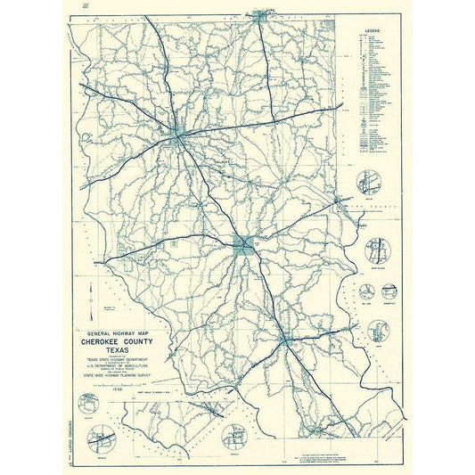 Cherokee Texas Highway - Highway Dept 1936 Gold Ornate Wood Framed Art Print with Double Matting by Highway Dept