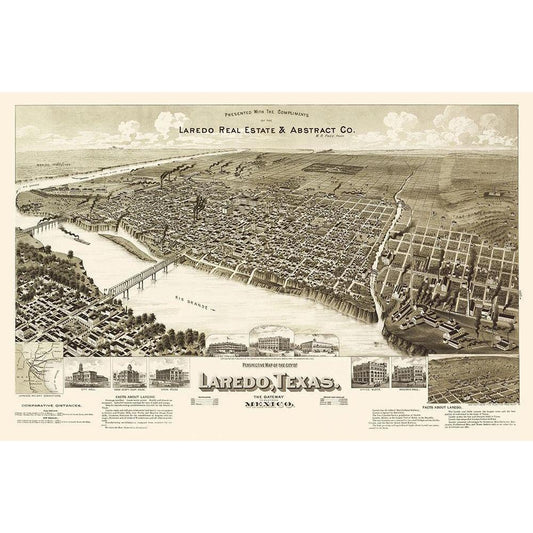 Laredo Texas - American Pub Co 1892 Gold Ornate Wood Framed Art Print with Double Matting by American Pub Co