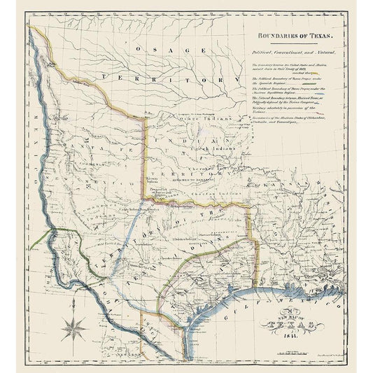 Texas Boundaries -1841 Gold Ornate Wood Framed Art Print with Double Matting by Unknown