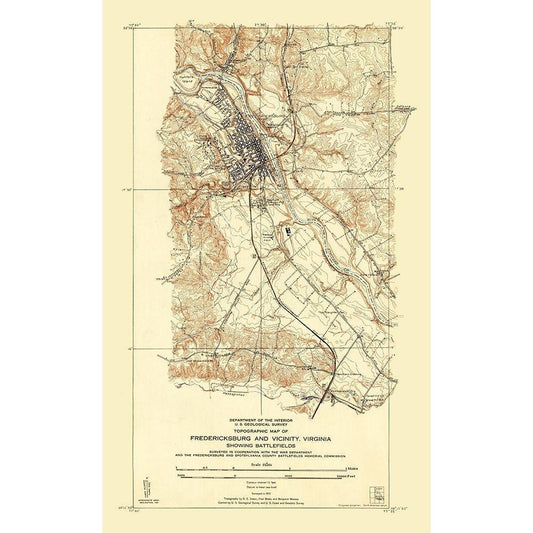 Fredericksburg Virginia - USGS 1931 Gold Ornate Wood Framed Art Print with Double Matting by Sisson