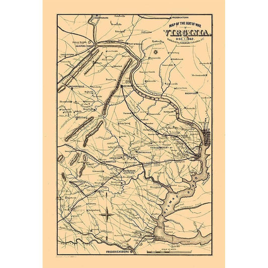 Seat of War Virginia - Duncan 1862 Gold Ornate Wood Framed Art Print with Double Matting by Duncan