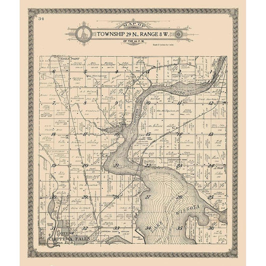 Chippewa Falls - Township 29 N., Range 8 W. Gold Ornate Wood Framed Art Print with Double Matting by Unknown