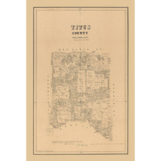 Titus County Texas - Walsh 1880 Gold Ornate Wood Framed Art Print with Double Matting by Walsh