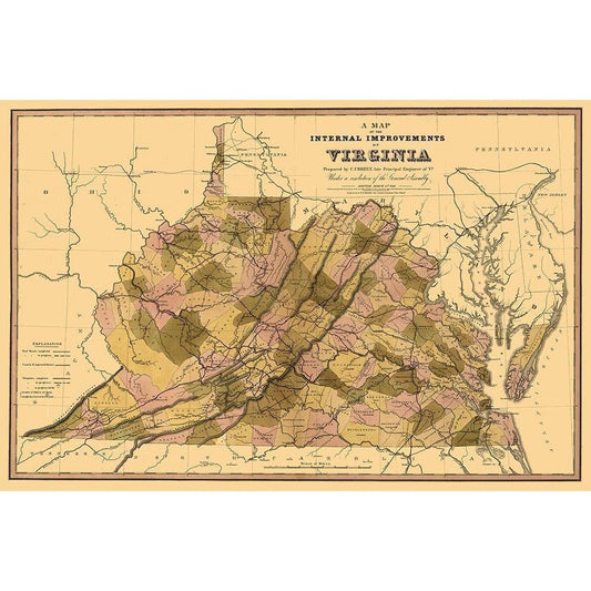 Internal Improvements Virginia - Crozet 1848 Gold Ornate Wood Framed Art Print with Double Matting by Crozet