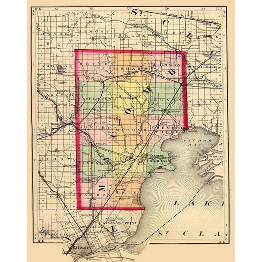 Macomb Michigan - Walling 1873 Gold Ornate Wood Framed Art Print with Double Matting by Walling